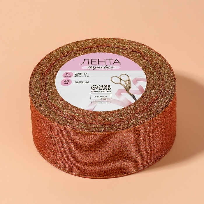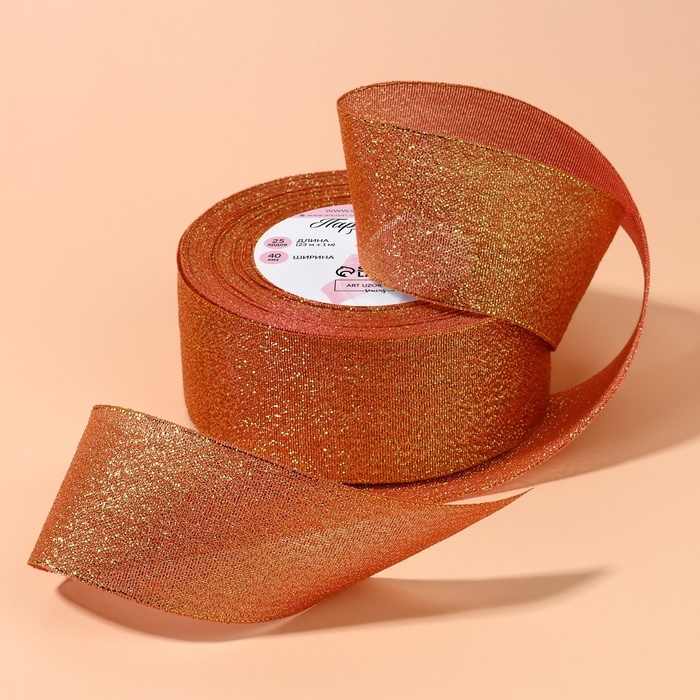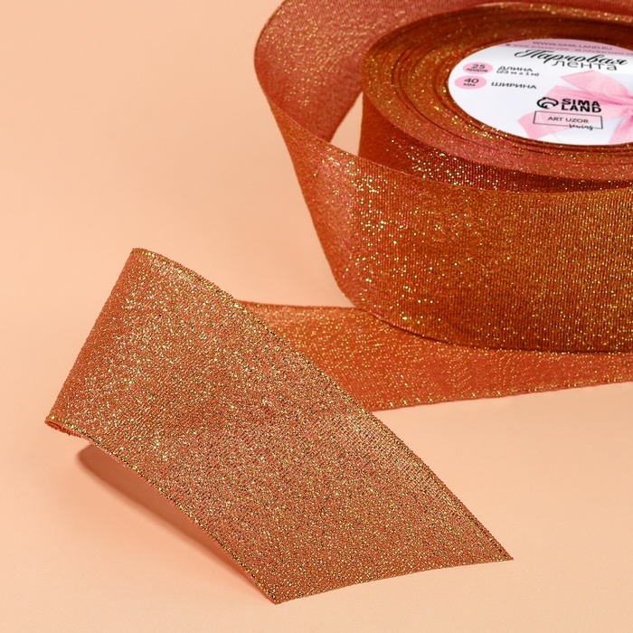 Лента парчовая, 40 мм, 23 ± 1 м, цвет морковный №014