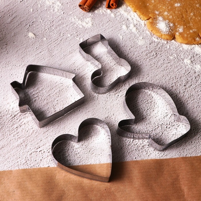 Новый год. Набор форм для печенья «Уют», металл, 4 шт