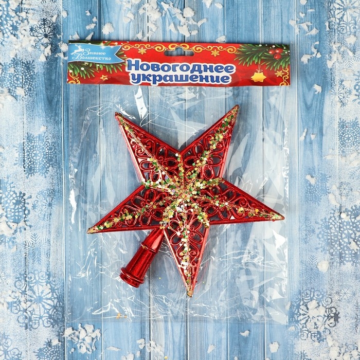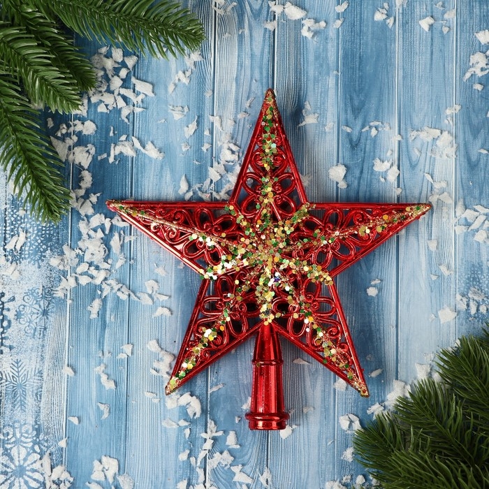 Наконечник "Звезда" узор полосы блеск, 19х19 см, золотисто-красный