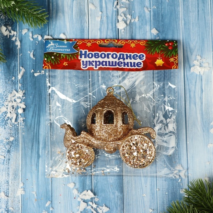 Украшение ёлочное "Карета глиттер" 10х8,5 см, золото