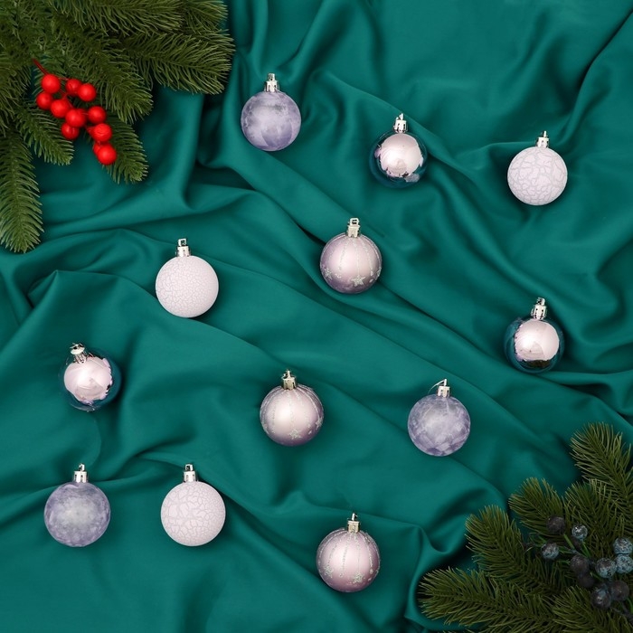 Набор шаров пластик d-5 см, 12 шт "Морозная ночь" сиреневый