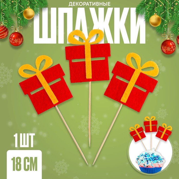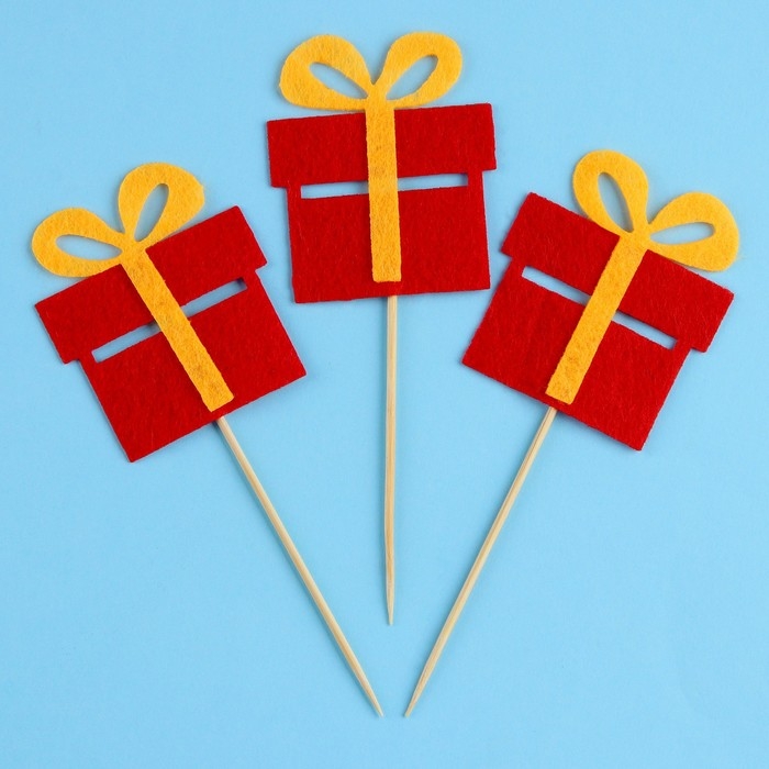 Новый год! Шпажки из фетра «Подарок», набор 3 шт.