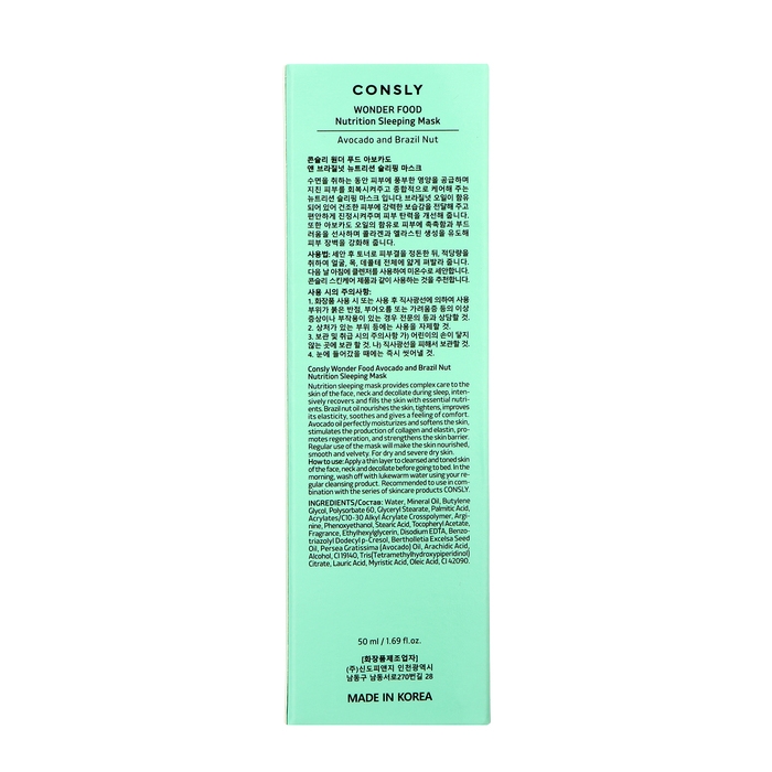 Ночная маска для лица Consly с маслом бразильского ореха и авокадо в объеме 50 мл - это уникальное средство для ухода за кожей лица, специально разработанное для использования в ночное время. Эта маска обогащена ценными маслами и предназначена для увлажнения, питания и восстановления кожи во время сна.