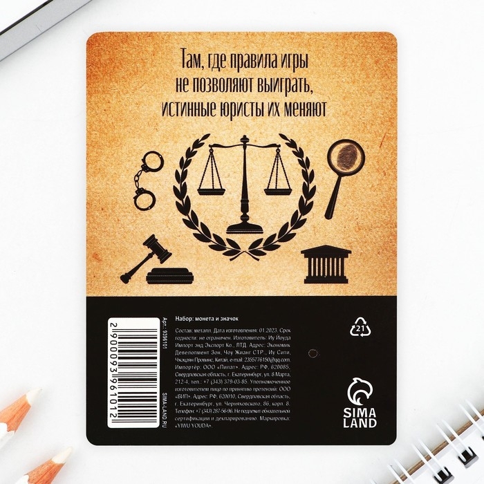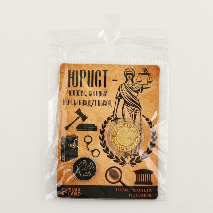 Монета и значок «Юрист», 7.5 х 10 см.