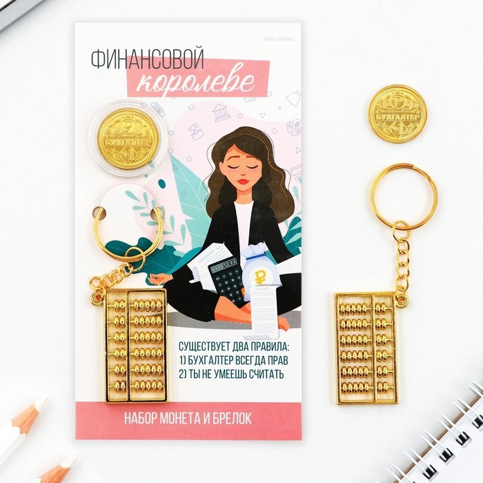 Набор монета и брелок "Финансовой королеве", 8 х 14 см - идеальный подарок на любой праздник!