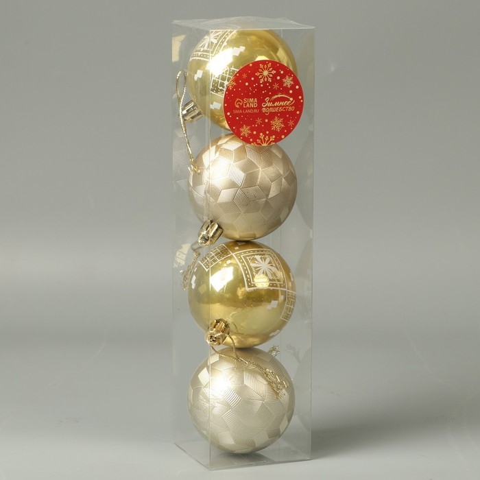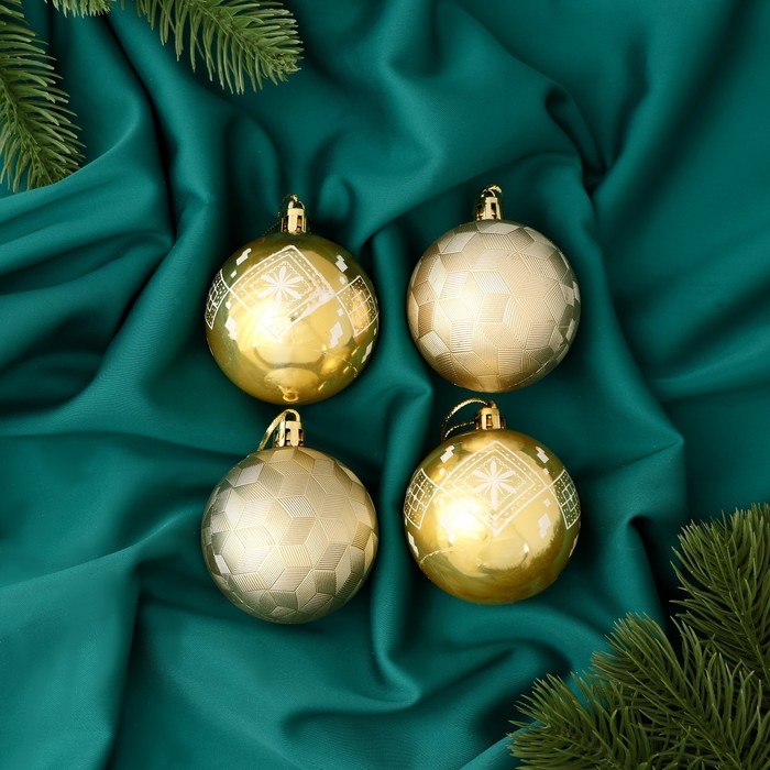 Набор шаров пластик d-5,5 см, 4 шт "Новогодние забавы" ромб цветок, золото
