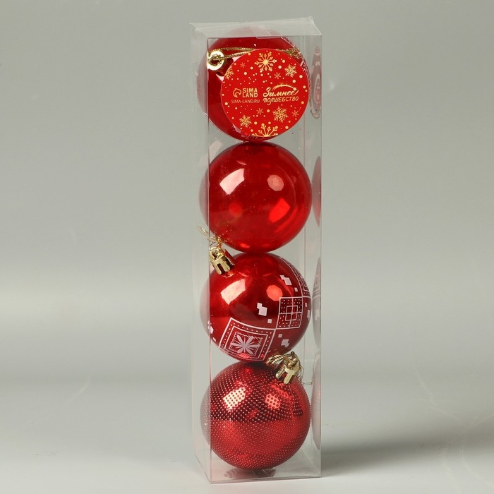 Набор шаров пластик d-5,5 см, 4 шт "Новогодние забавы" ромб цветок, красный