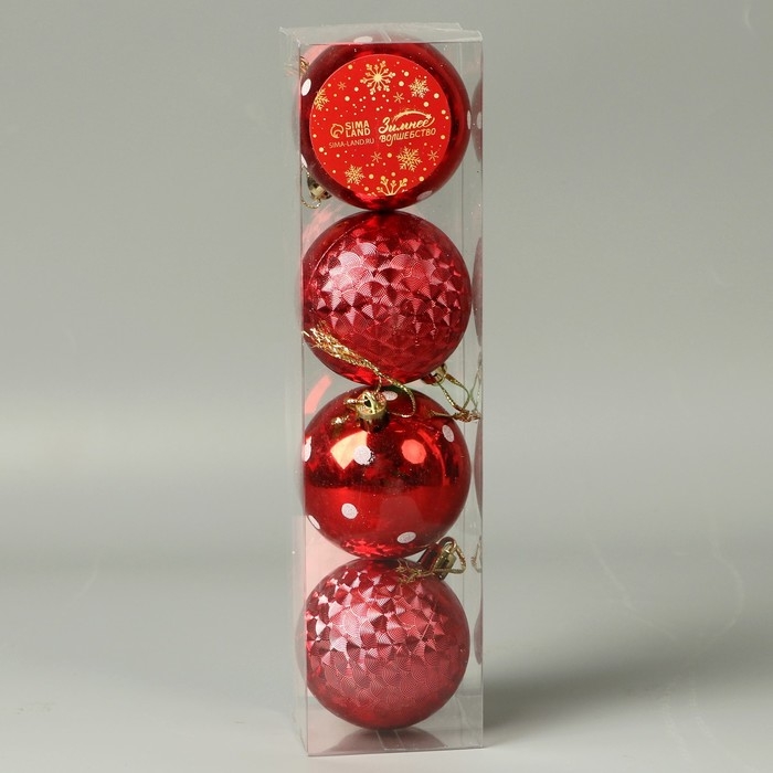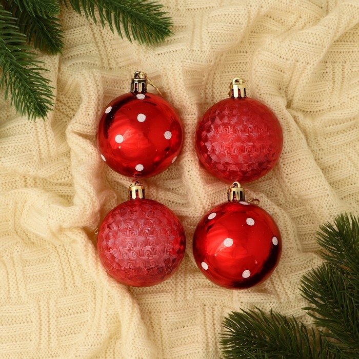 Набор шаров пластик d-5,5 см, 4 шт "Новогодние забавы" горошек, красный