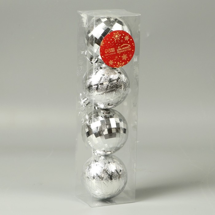 Набор шаров пластик d-5,5 см, 4 шт "Диско-шар" серебро