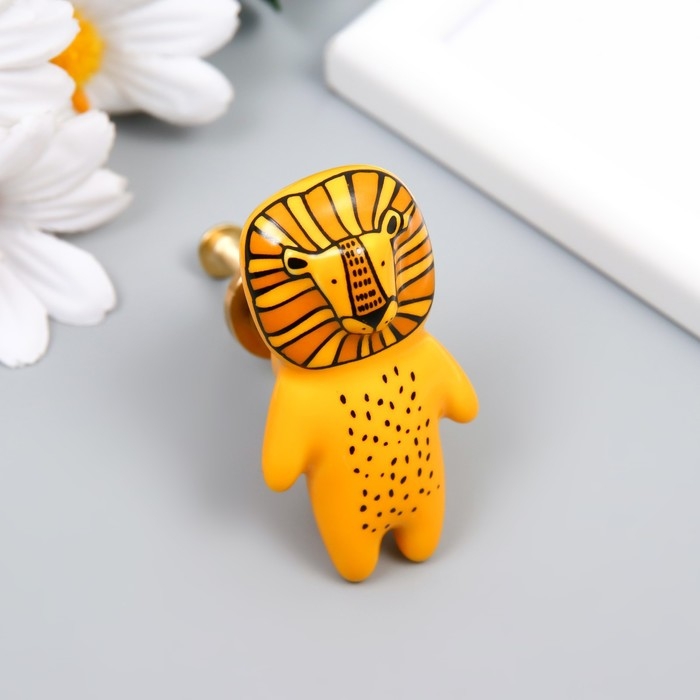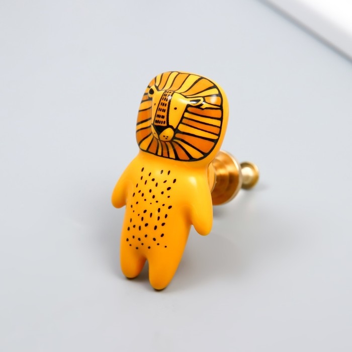 Ручка для шкатулки керамика, металл "Львёнок" 6,3х3,5 см