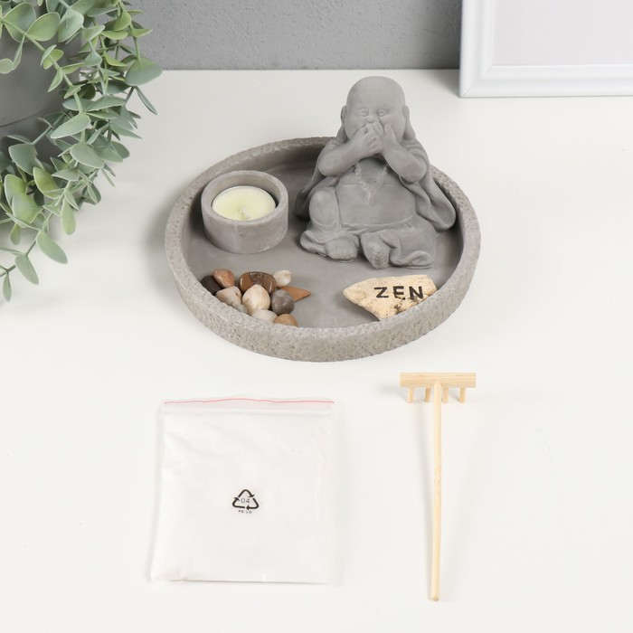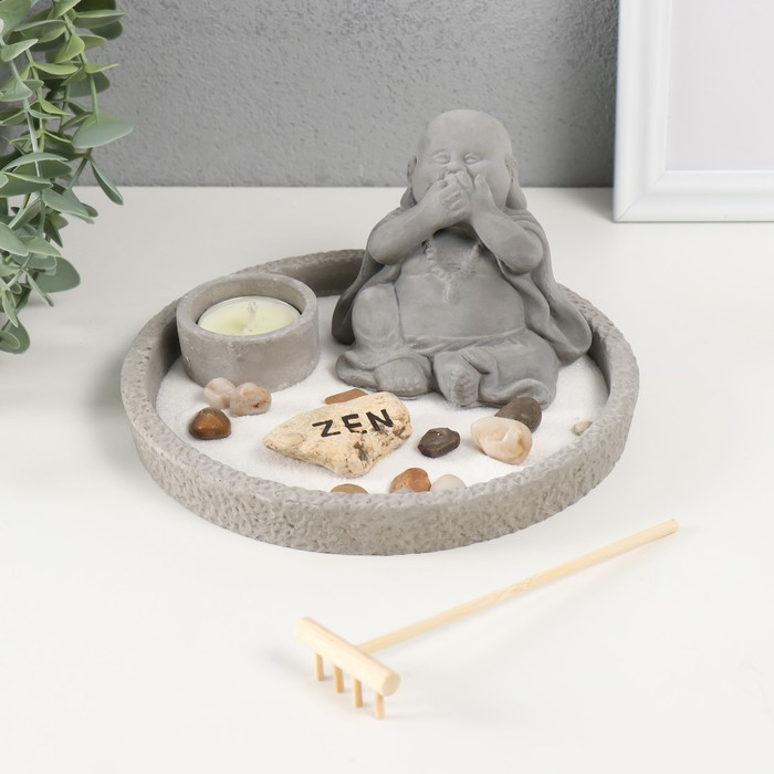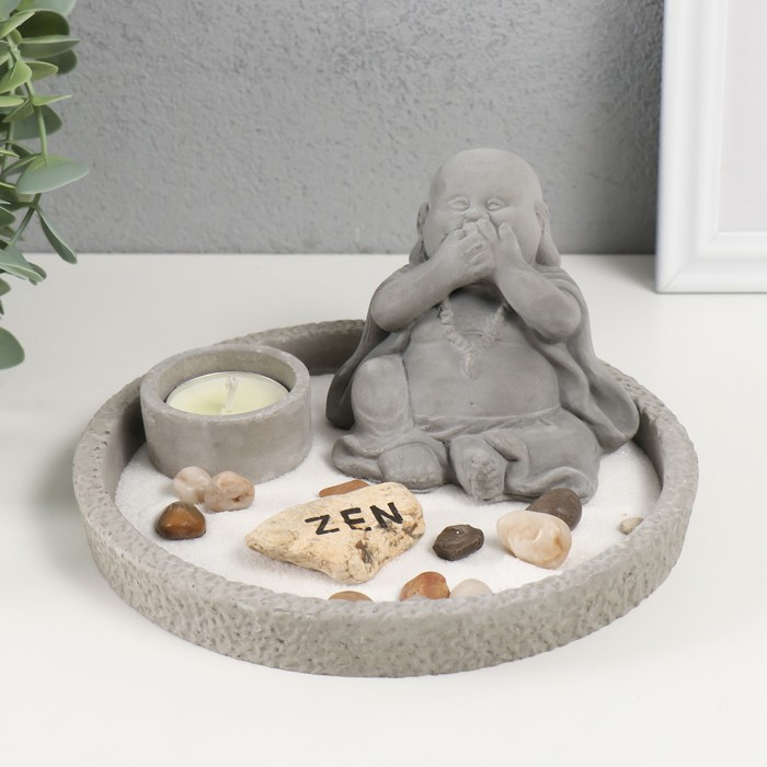 Сад камней Дзен d=16,5 см "Хотей: ничего не говорю", со свечой, серый