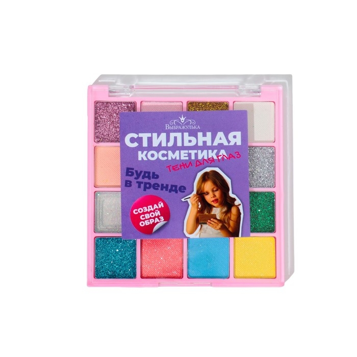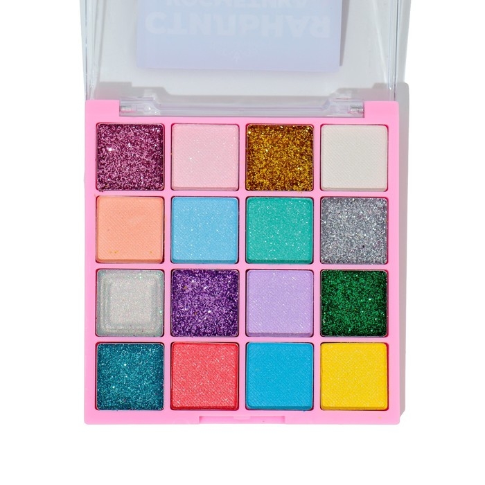 Набор теней детских для век 16 цв, 8 с блёстками, 8 матовые