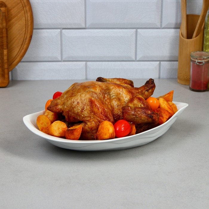 Элегантное фарфоровое блюдо - идеальный выбор для сервировки любых блюд. Блюдо из фарфора украсит любой стол и добавит изысканности вашей еде. Подходит для сервировки салатов, пасты, суши, закусок, а также холодца, рыбы, мяса и других блюд. Белый цвет и его гладкая текстура придают блюду изящный и элегантный вид, который подойдет для разных мероприятий и столовых сервировок. Также может использоваться в качестве декоративной подставки для фруктов, сыра и других украшений на вашем столе. Идеально подходит для сервировки различных явств на столе в кафе, ресторане, столовой или дома. Благодаря его форме и размеру, вы можете разнообразить ваше меню, включая нарезки, печенье, картофель фри, салаты, варенье, фрукты и сладости. Независимо от того, используется ли оно на свадьбе, вечеринке или просто для ужина в кругу семьи, это блюдо будет удачным выбором для подачи.