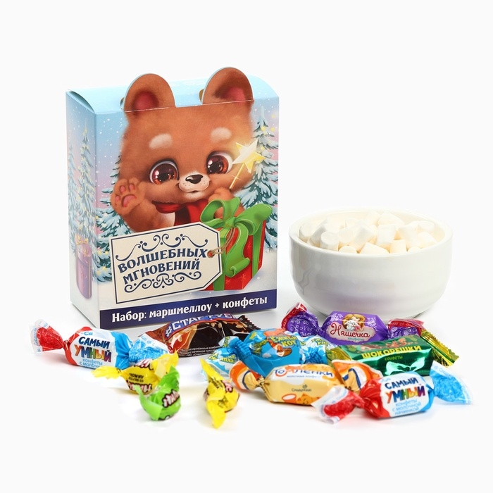 Сладкий детский новогодний подарок «Медведь», конфеты и маршмеллоу, 250 г.