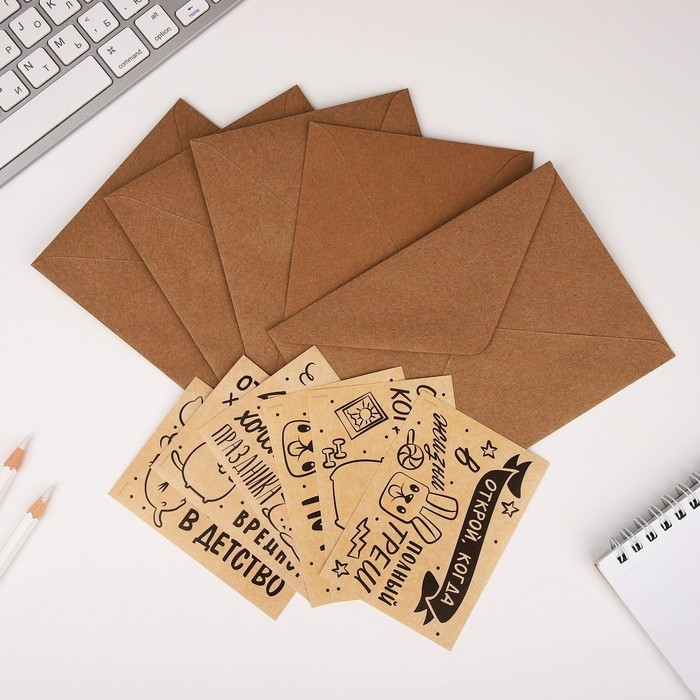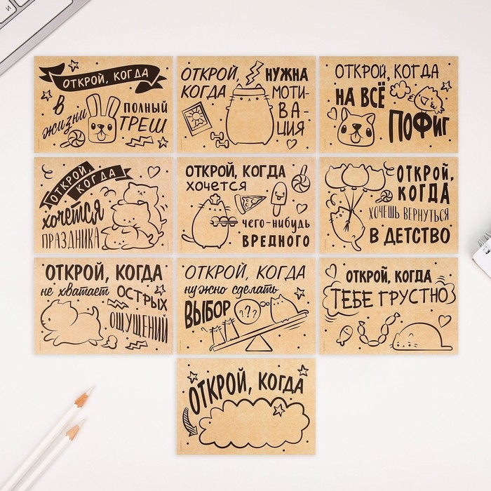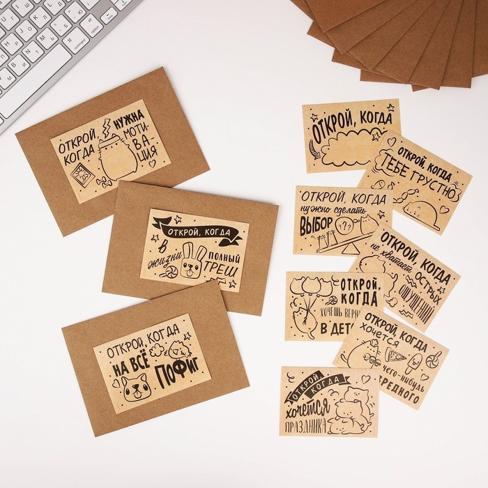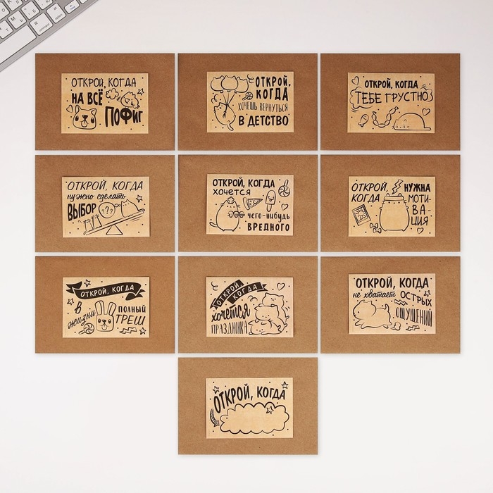 Конверты с наклейками, набор «Открой, когда...», (Крафт), 10шт., 16 х 11,5 см.