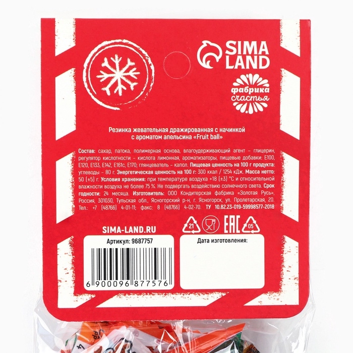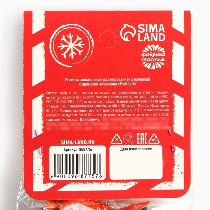 Жевательная резинка «Новогодняя почта» с начинкой и ароматом апельсина, 50 г.