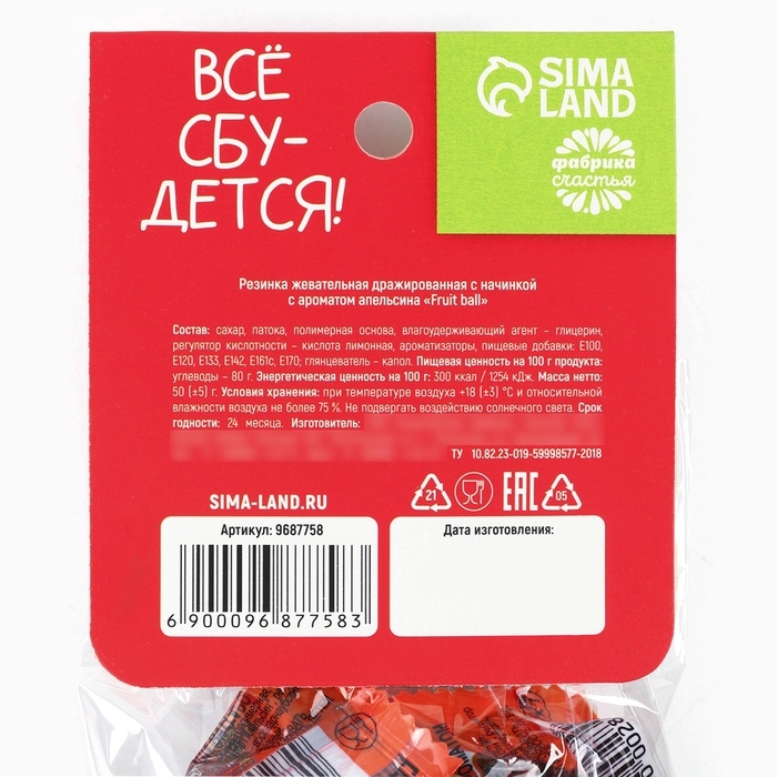 Состав: сахар, патока, полимерная основа, влагоудерживающий агент - глицерин, регулятор кислотности - кислота лимонная, желатин, ароматизатор, идентичный натуральному, "Арбуз" и "Дыня", пищевой краситель Е120, загуститель - желатин, глянцеватель - капол.