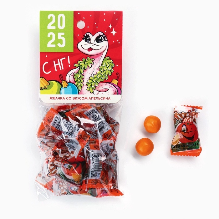 Жевательная резинка «С НГ 2025!» с начинкой и ароматом апельсина, 50 г.