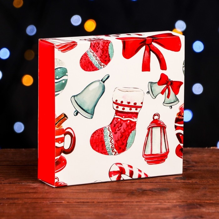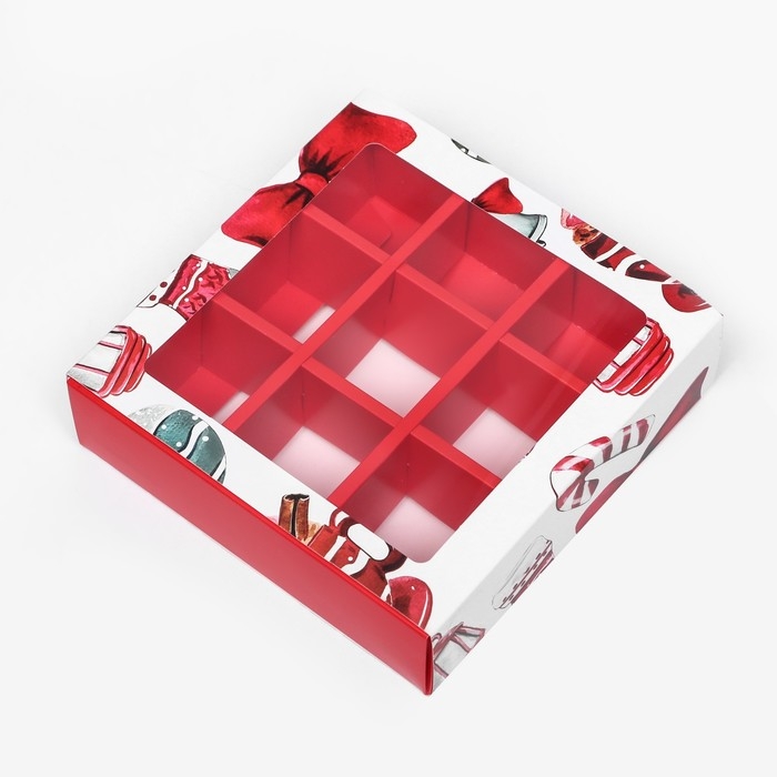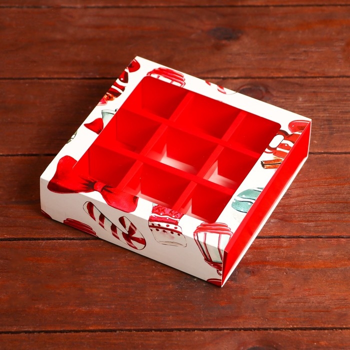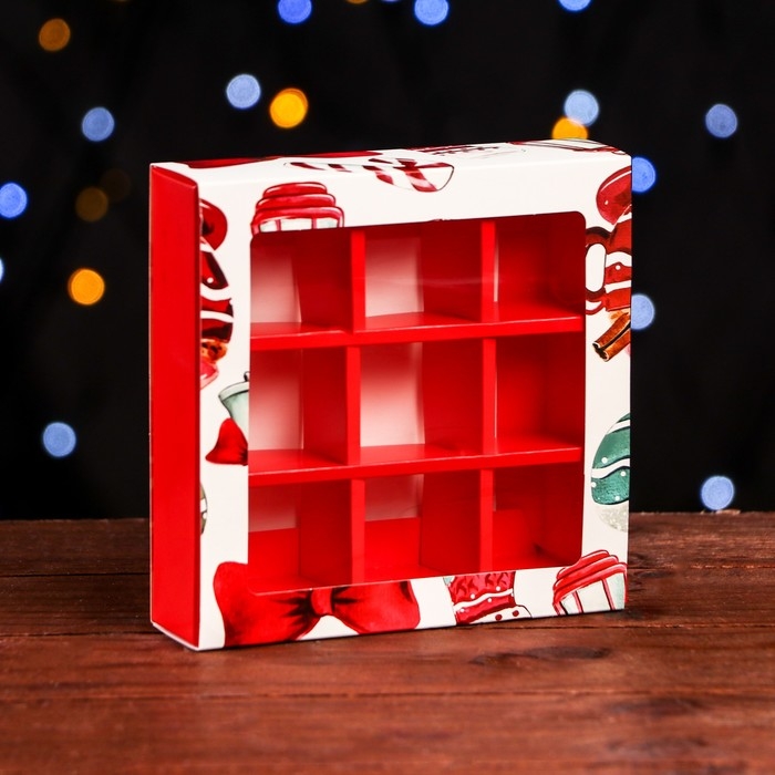 Новый год. Коробка под 9 конфет "Новогодний фонарик", 13,7 х 13,7 х 3,5 см, кондитерская упаковка