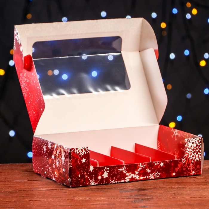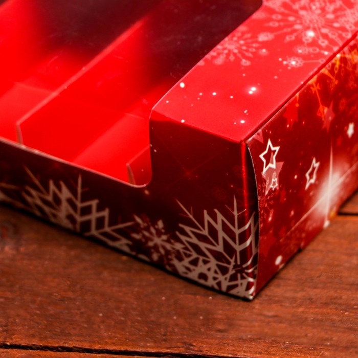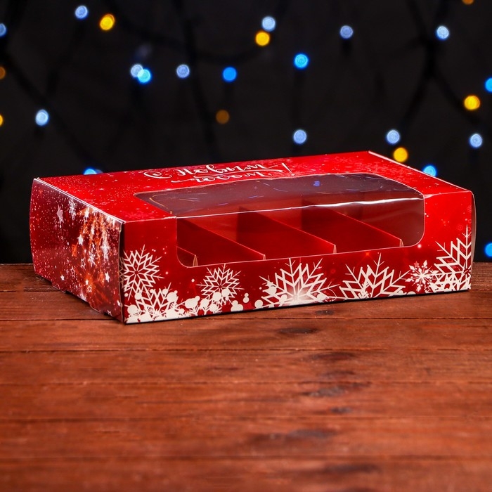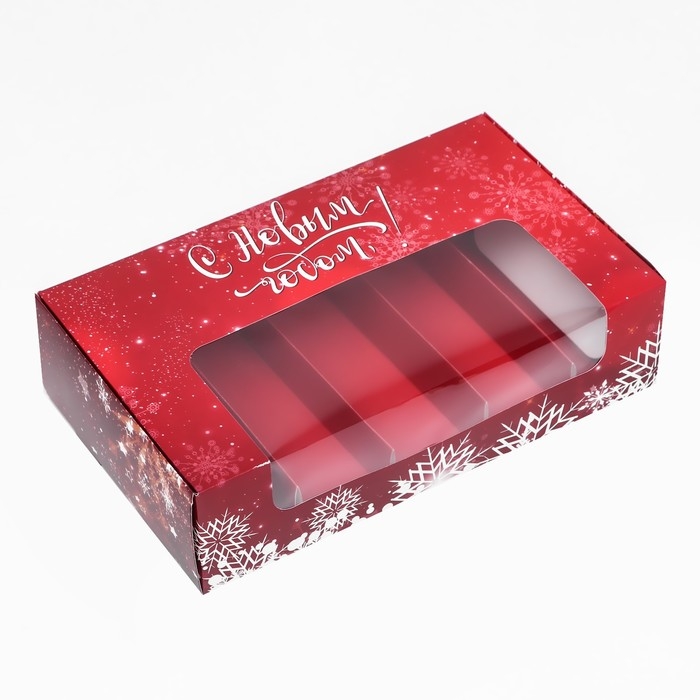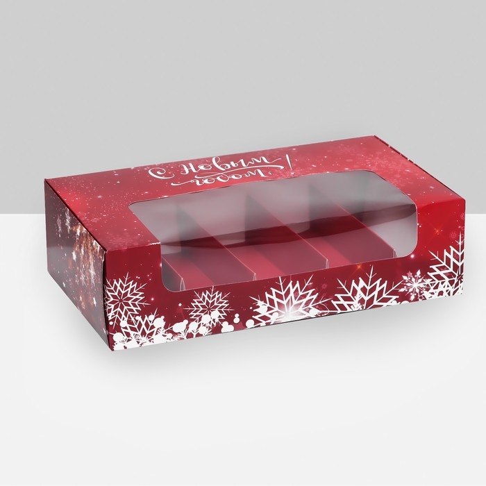 Новый год. Кондитерская упаковка под 5 эклеров "Снежинки", 25,2 х 15 х 6,6 см