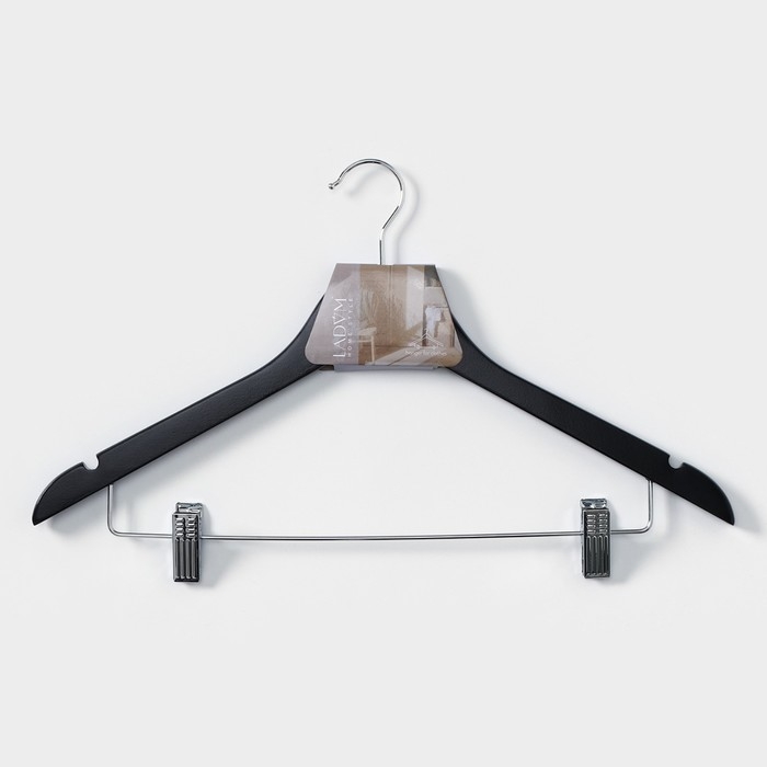 Плечики - вешалка для брюк и юбок LaDо́m Bois, 44,5×1,2×27,5 см, с зажимами, широкие плечики, деревянная сорт А