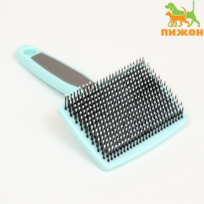 Пуходерка пластиковая мягкая с закругленными зубьями, средняя, 9 х 15,5 см, бирюзовая