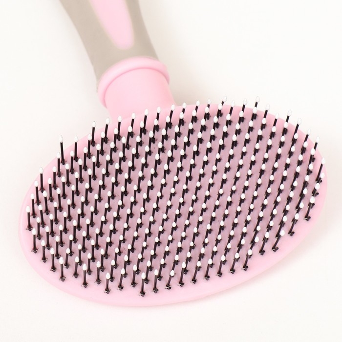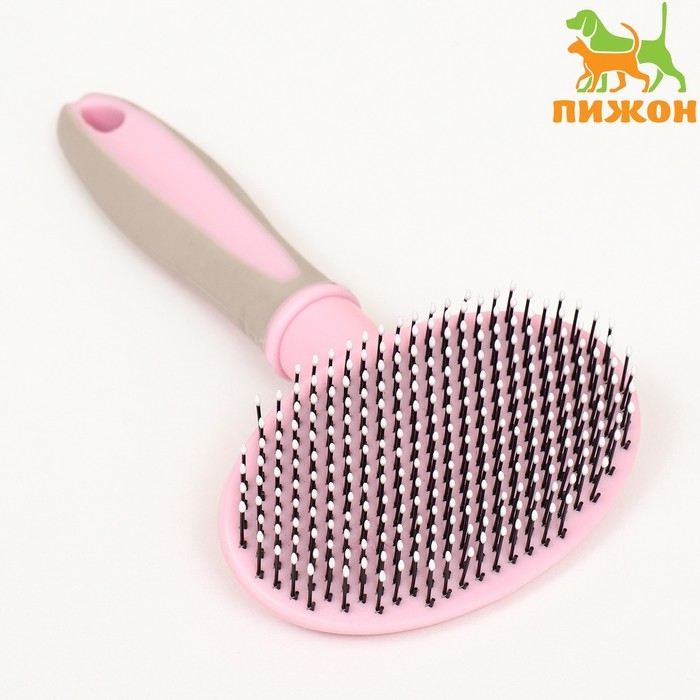 Пуходерка пластиковая мягкая с закругленными зубьями, средняя, 9,5 х 16,5 см, розовая
