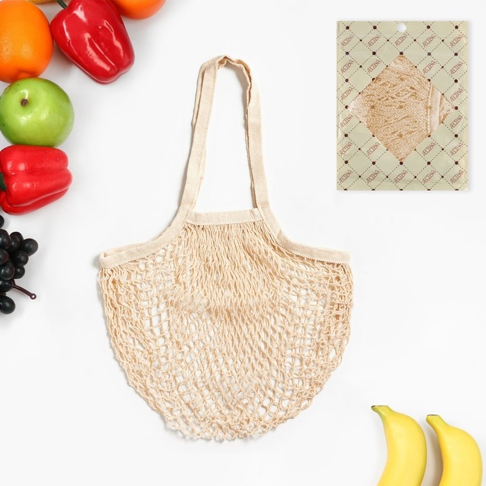 Авоська, 41 х 27 см, ручка 17 см, клетка 1.5 см, бежевая