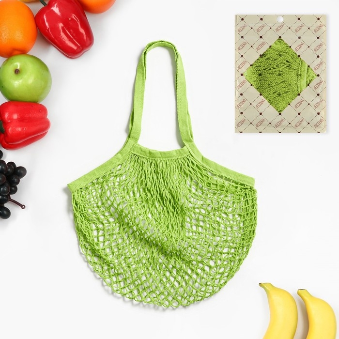 Авоська 37 х 20 см, ручка 12 см, клетка 1.5 см, зелёная