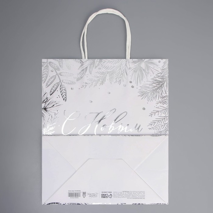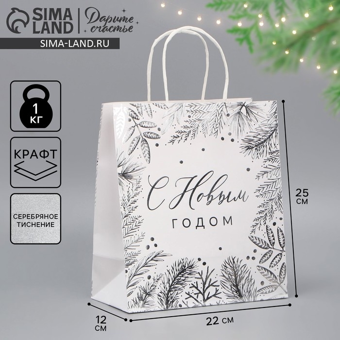 Пакет подарочный новогодний крафтовый «Серебро», 22 х 25 х 12 см, Новый год