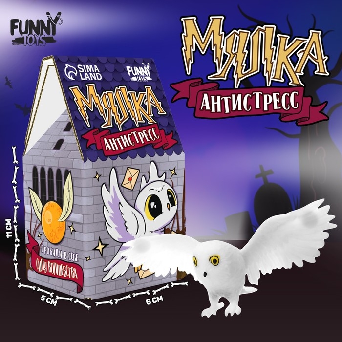 Хэллоуин. Антистресс сквиш мялка с наклейками «Сова», с гидрогелем,