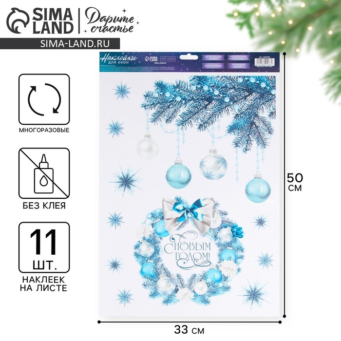 Наклейка для окон «Новогодний венок», многоразовая, 33 х 50 см, Новый год