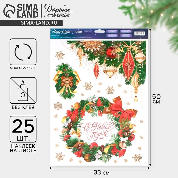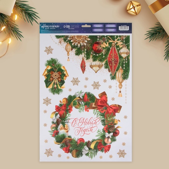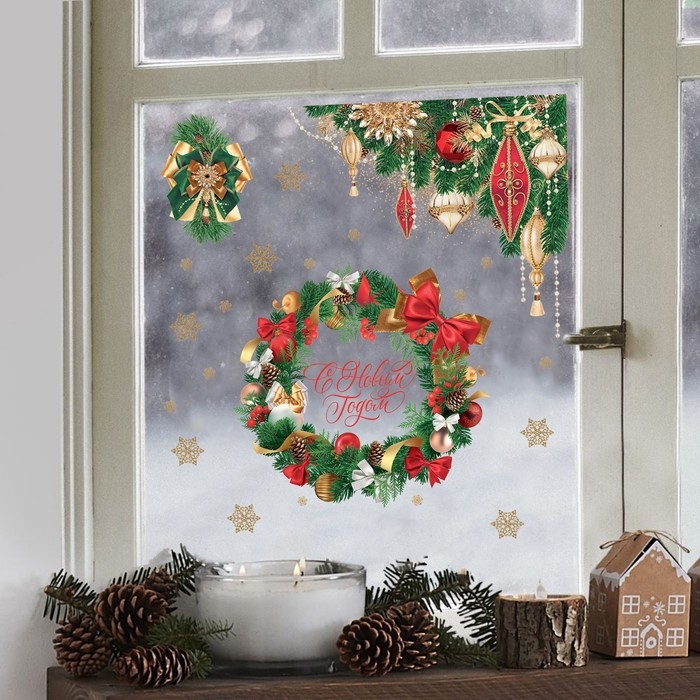 Наклейки новогодние на окна «С Новым годом», многоразовые, 33 х 50 см, Новый год