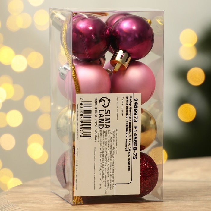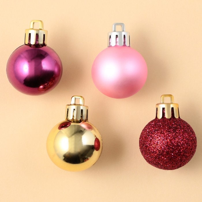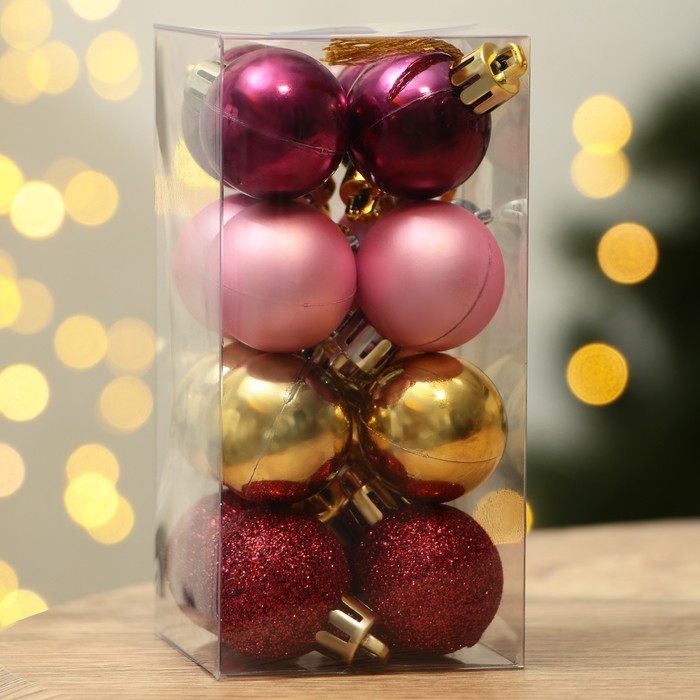 Шары ёлочные новогодние, на Новый год, пластик, d=3 см, 16 шт., цвет винный, розовый и золотой