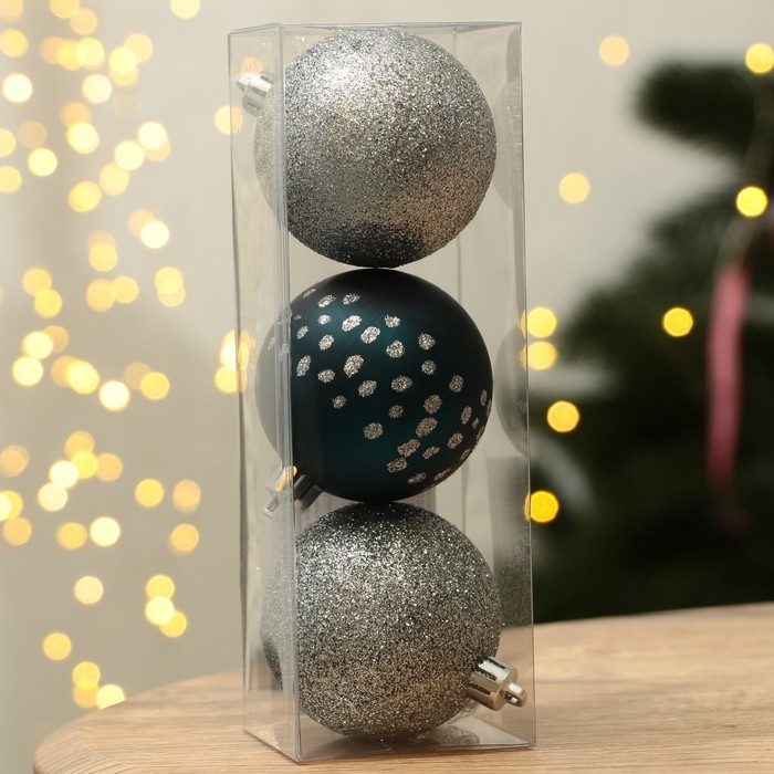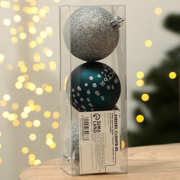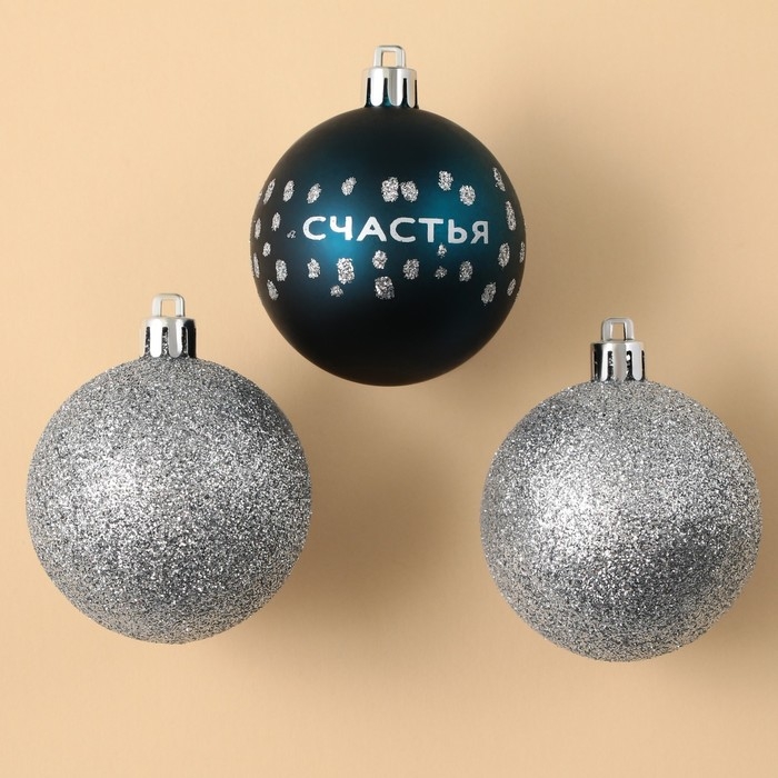 Шары ёлочные новогодние «Счастья!», на Новый год, пластик, d=6, 3 шт., цвет синий и серебристый