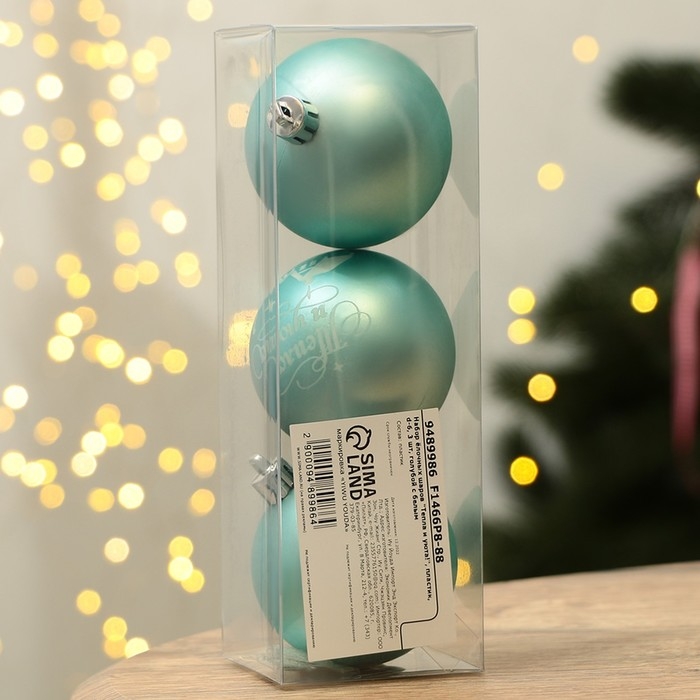 Шары ёлочные новогодние «Тепла и уюта!», на Новый год, пластик, d=6, 3 шт., цвет голубой с белым