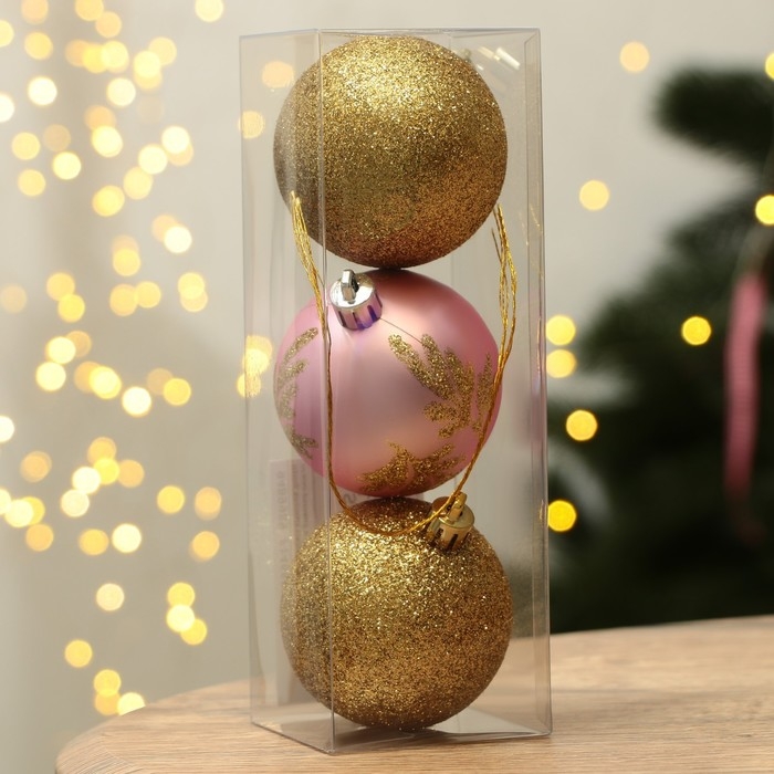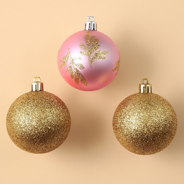 Шары ёлочные новогодние, на Новый год, d=6 см, 3 шт, цвет нежно-розовый и золотой