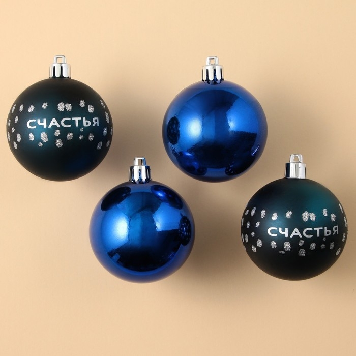 Шары ёлочные новогодние «Счастья!», на Новый год, пластик, d=6, 4 шт., цвет синий с серебряным