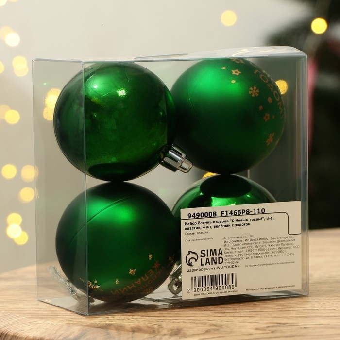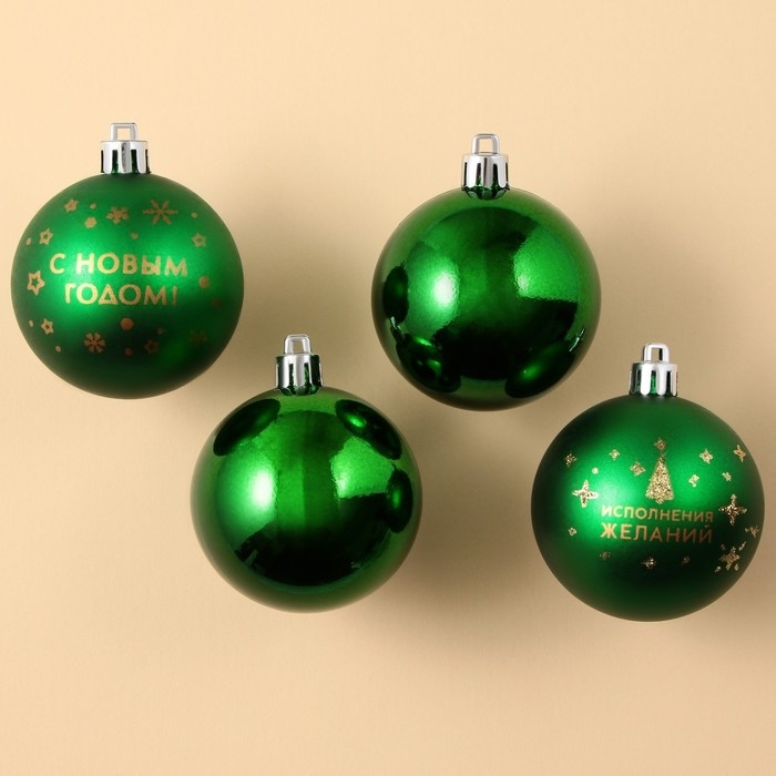 Шары ёлочные новогодние «С Новым годом!», на Новый год, пластик, d=6, 4 шт., цвет зелёный с золотом