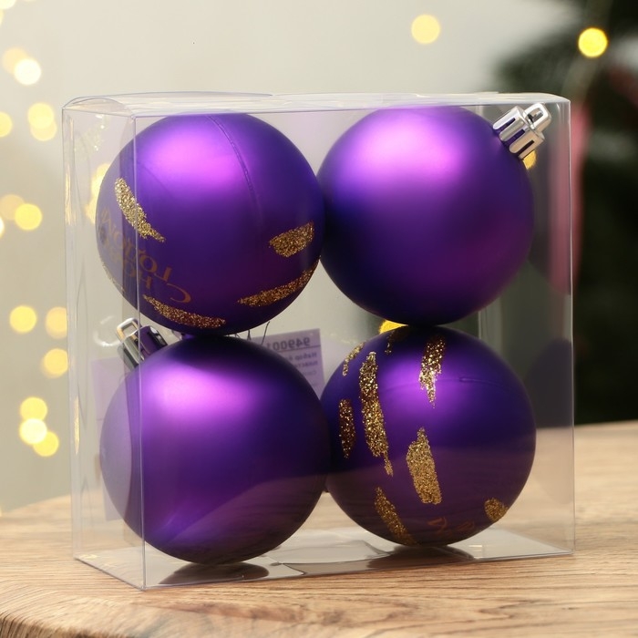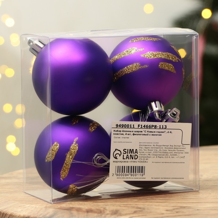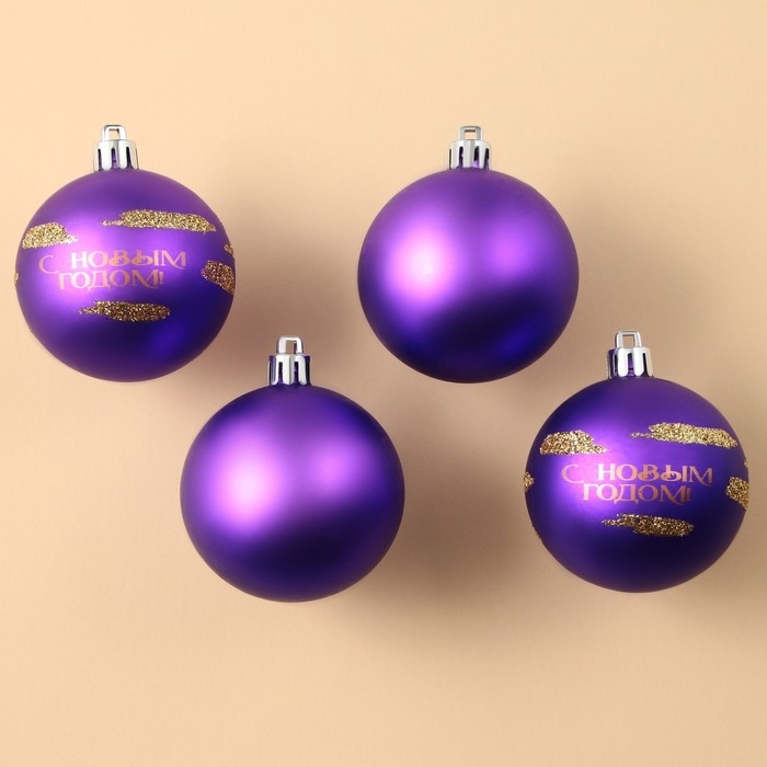 Шары ёлочные новогодние «С Новым годом!», на Новый год, пластик, d=6, 4 шт., цвет фиолетовый с золотом