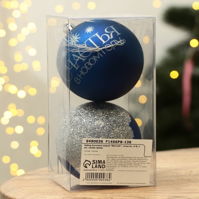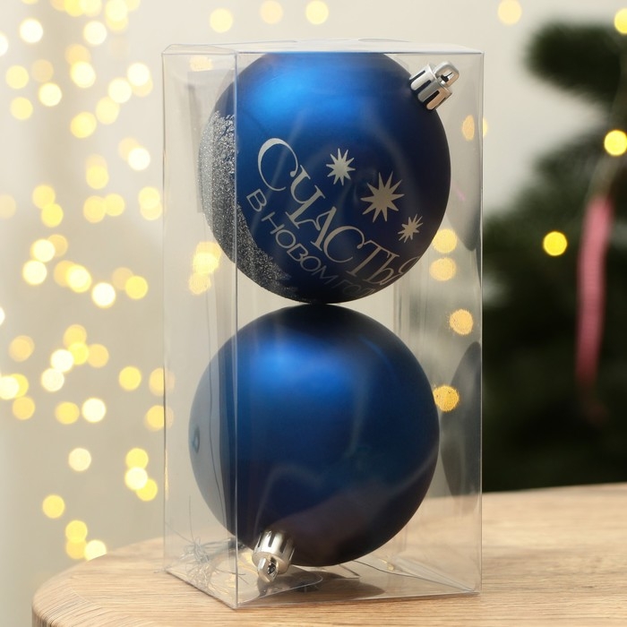 Шары ёлочные новогодние «Мечтай!», на Новый год, пластик, d=8, 2 шт., цвет синяя гамма