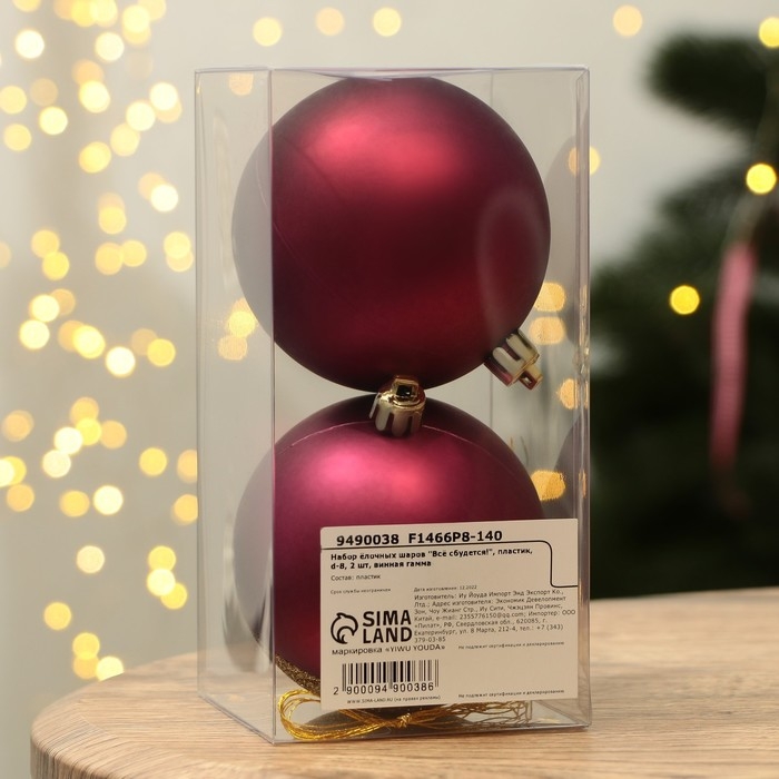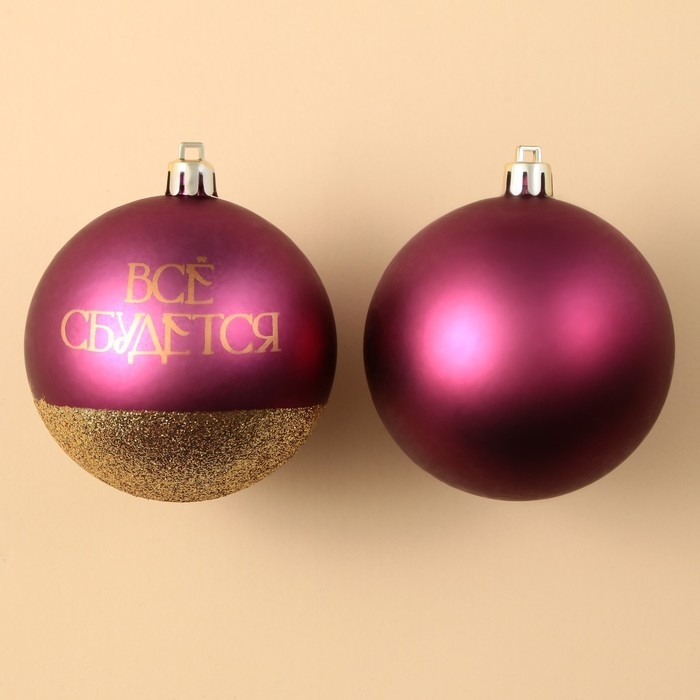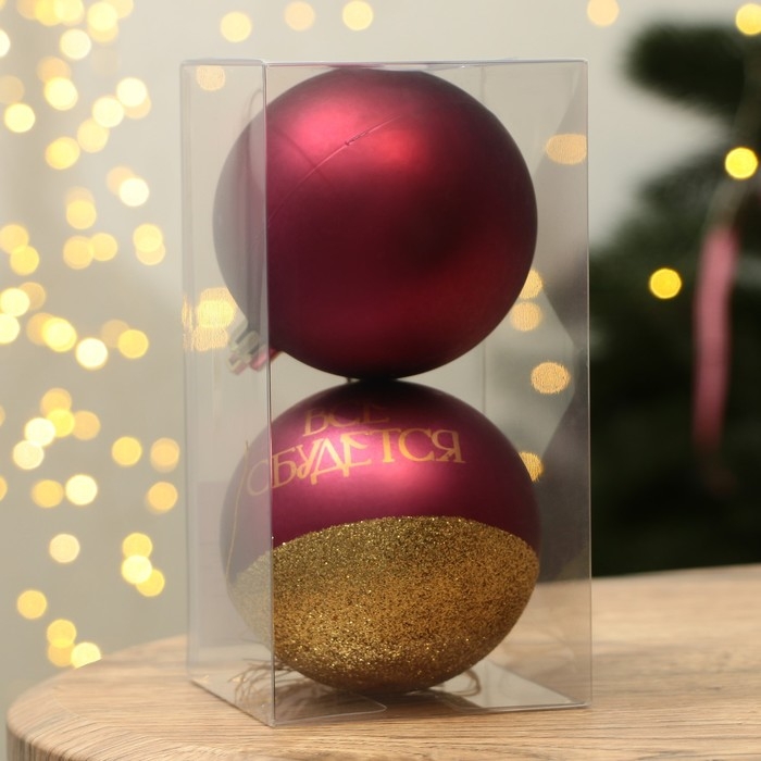 Шары ёлочные новогодние «Всё сбудется!», на Новый год, пластик, d=8, 2 шт., цвет винная гамма