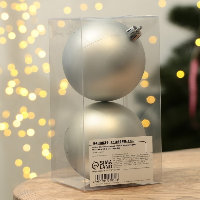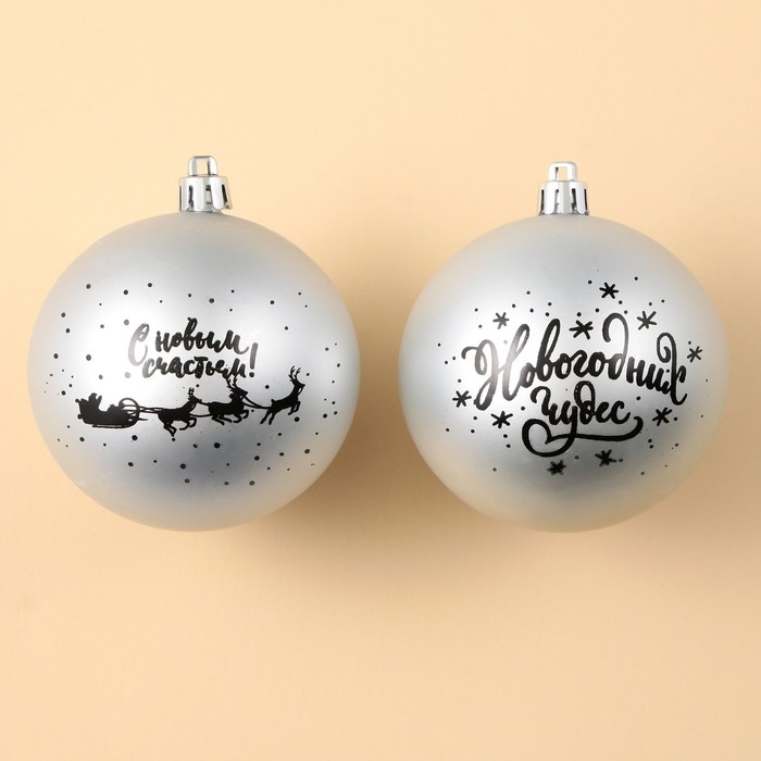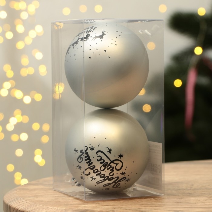 Шары ёлочные новогодние «Новогодних чудес!», на Новый год, пластик, d=8, 2 шт., цвет серебристый