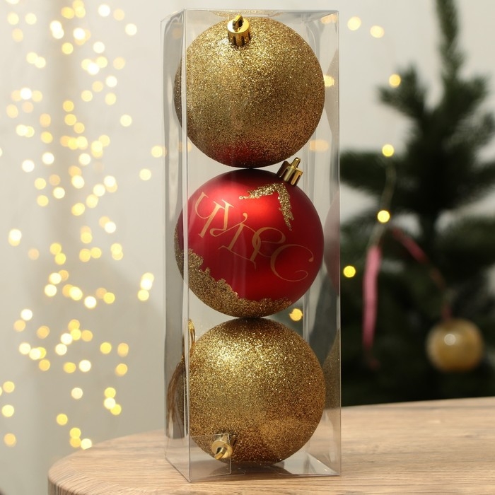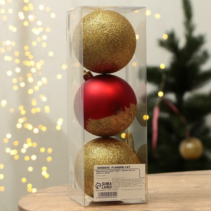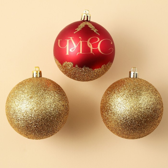 Шары ёлочные новогодние «Чудес!», на Новый год, пластик, d=8, 3 шт., цвет красный и золотой