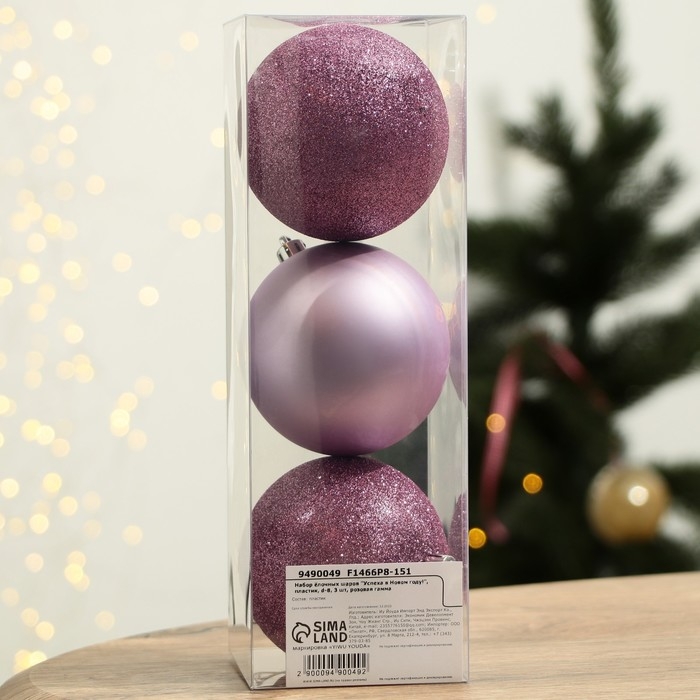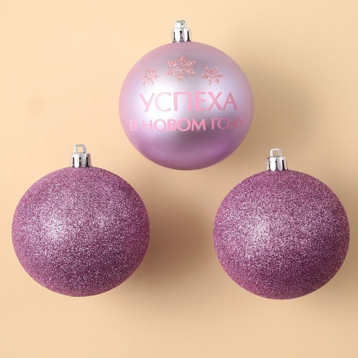 Шары ёлочные новогодние «Успеха в Новом году!», на Новый год, пластик, d=8, 3 шт., цвет розовая гамма