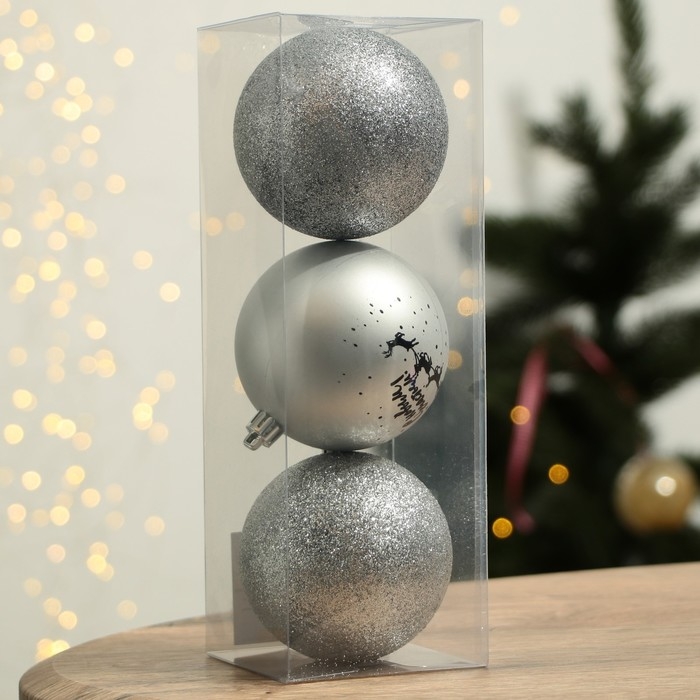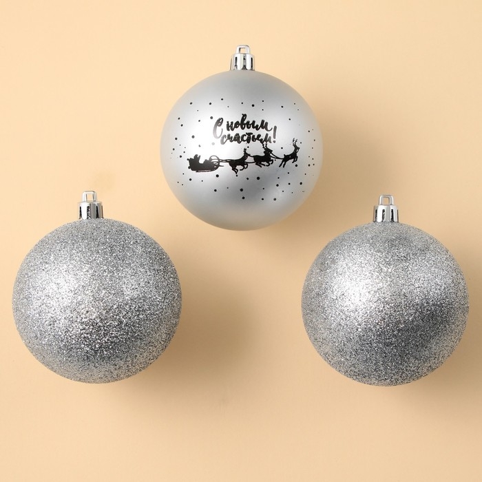 Шары ёлочные новогодние «С Новым годом!», на Новый год, пластик, d=8, 3 шт., цвет серебристый