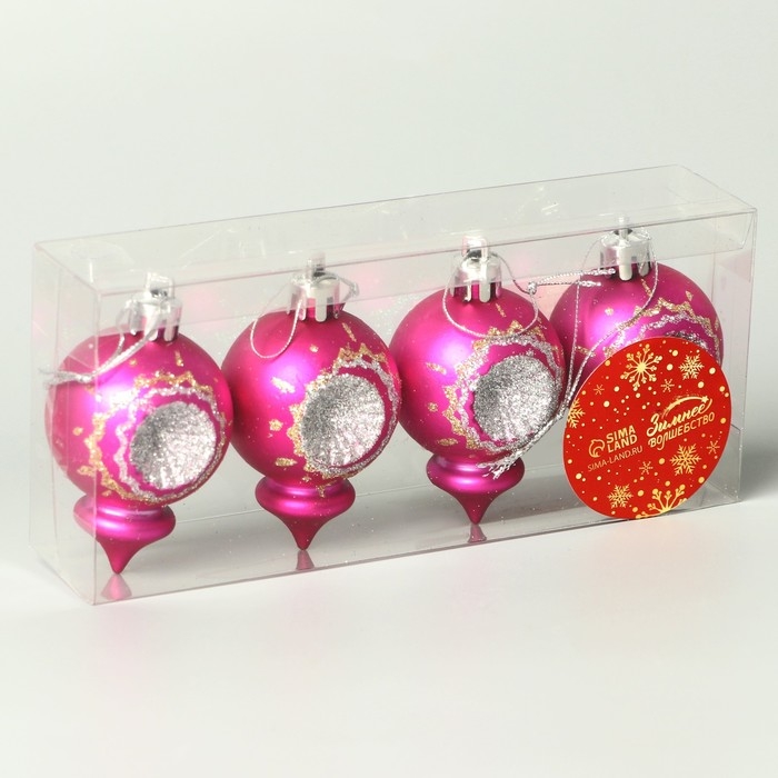 Набор украшений пластик 4 шт "Огонёк" 4х6 см, розовый