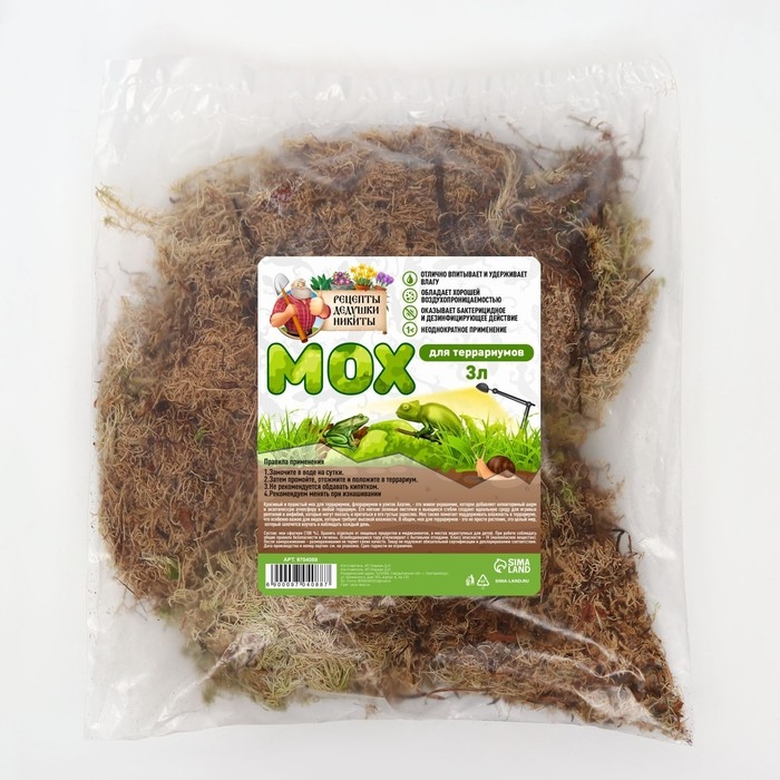Мы предлагаем мох для террариумов, который поможет создать яркую и уютную атмосферу для ваших домашних питомцев. Мох сфагнум для террариумов Рецепты дедушки Никиты, не только добавит красоты и эстетического очарования в ваш террариум, но и обеспечит множество положительных качеств для животных.
