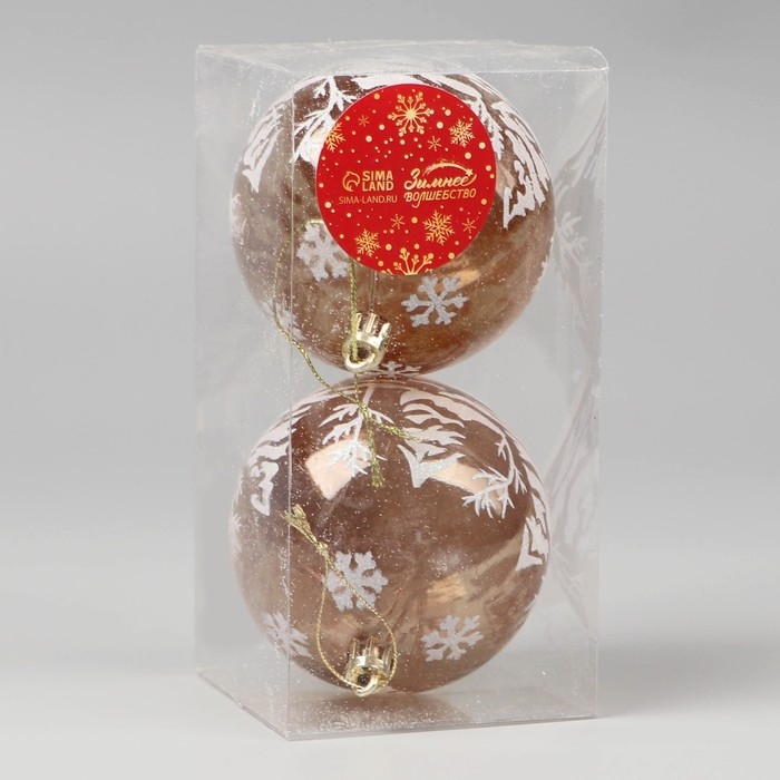Набор шаров пластик d-8 см, 2 шт "Зимняя сказка" лес, бело-коричневый