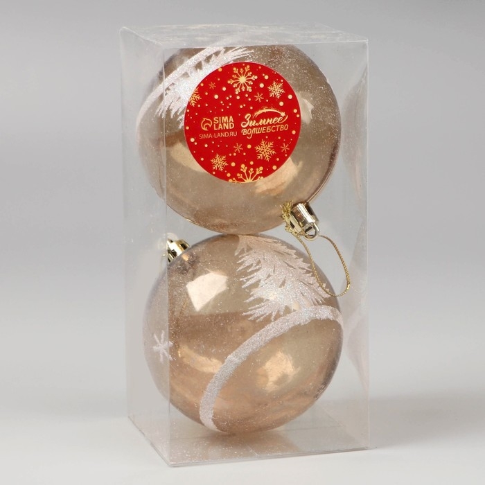 Набор шаров пластик d-8 см, 2 шт "Зимняя сказка" бело-коричневый